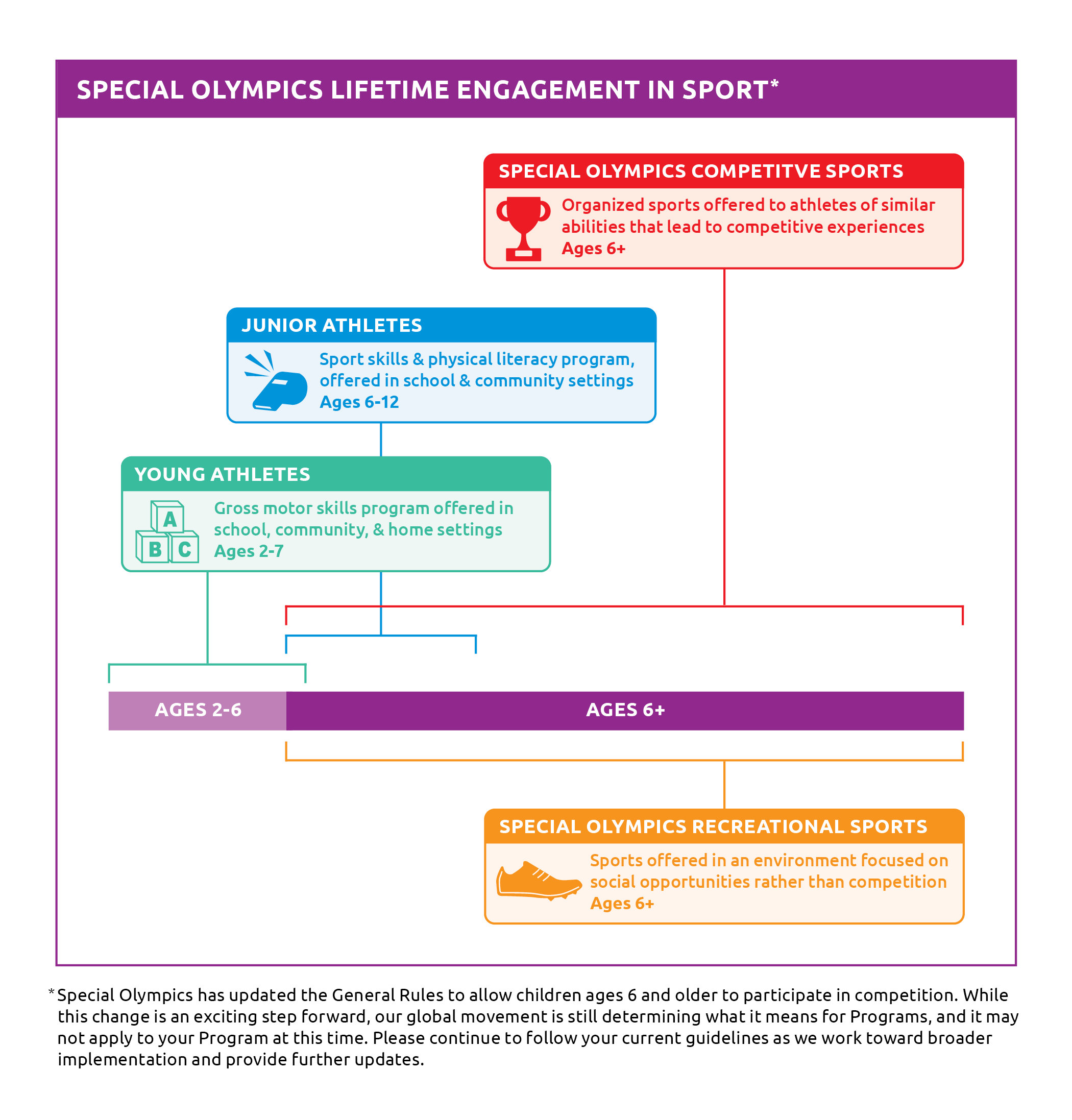 - A child under age 7 has advanced beyond the skills in their Young Athletes activities, but is not yet old enough to participate in Special Olympics.